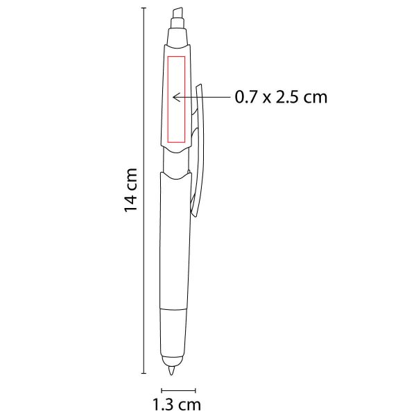 Bolígrafo con touch screen y marcatexto. Mecanismo pulsador.