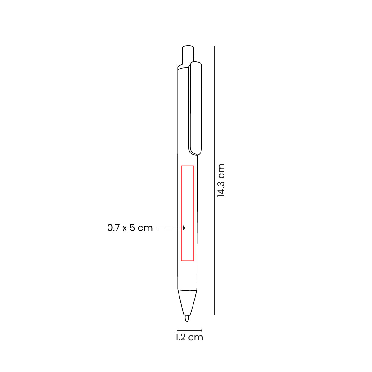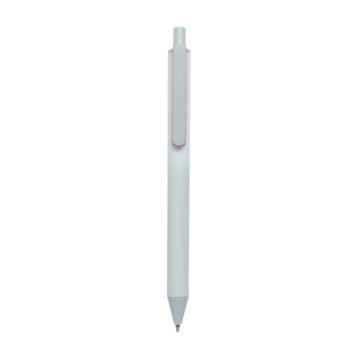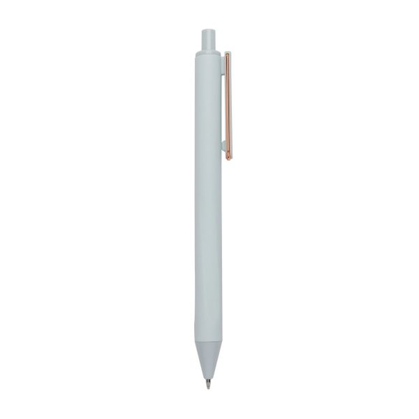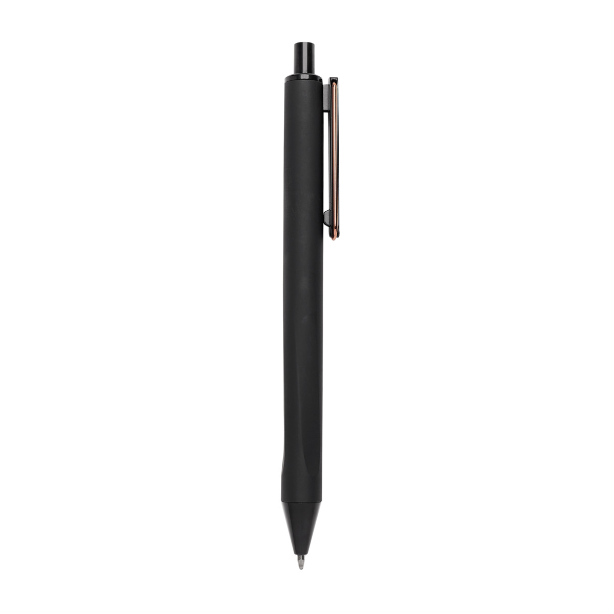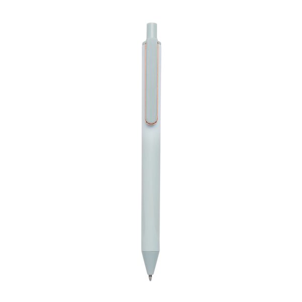 Bolígrafo con terminado tipo rubber. Mecanismo pulsador. Su diseño inferior permite un mejor agarre.