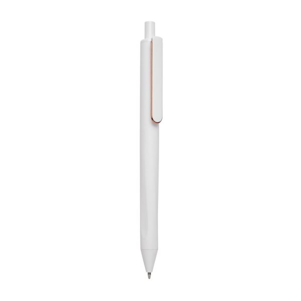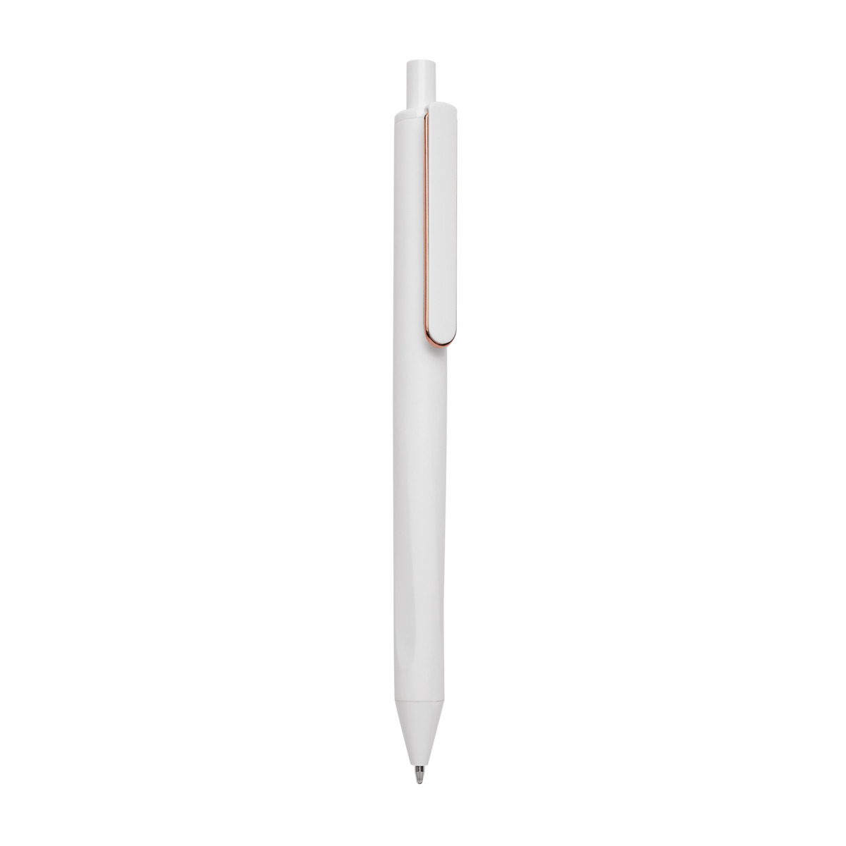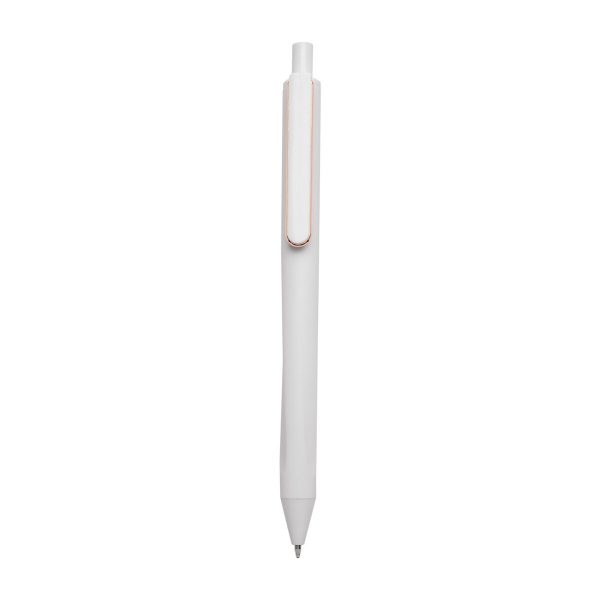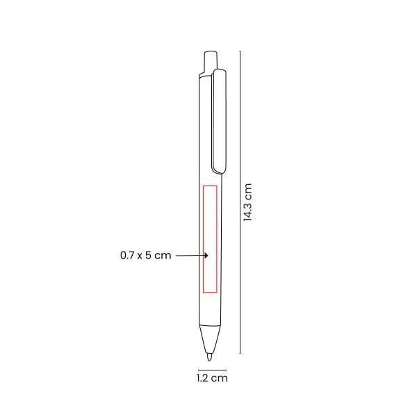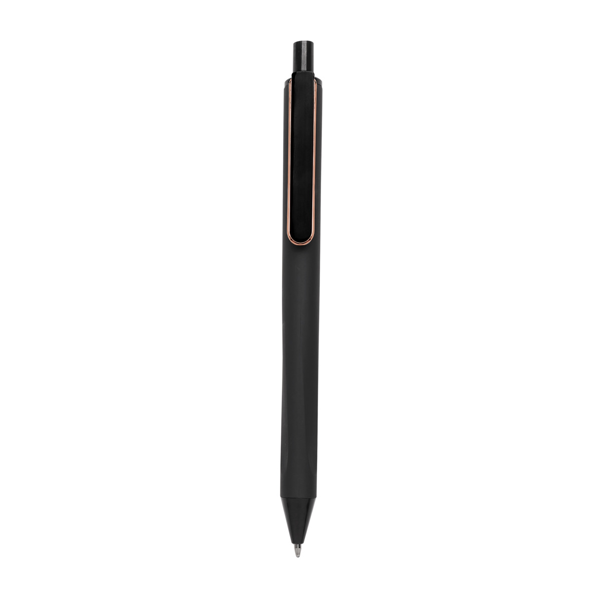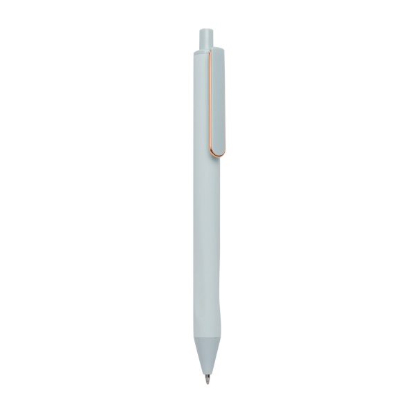 Bolígrafo con terminado tipo rubber. Mecanismo pulsador. Su diseño inferior permite un mejor agarre.