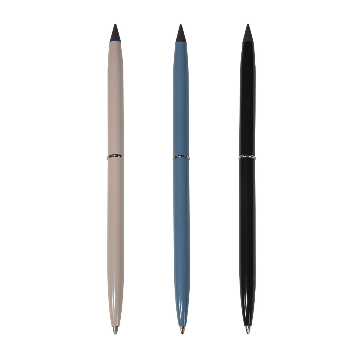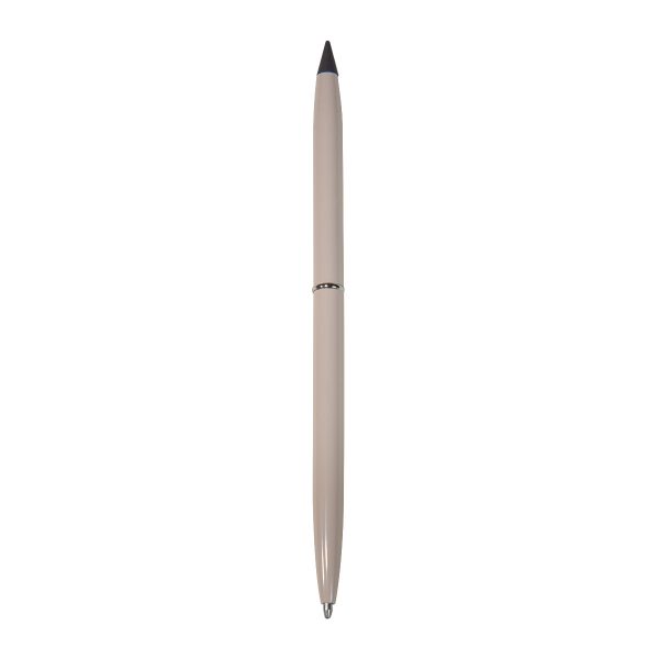 Bolígrafo con función dual, con una punta infinita tipo lápiz. Mecanismo twist. Destaca su peso ligero y su perfil delgado.