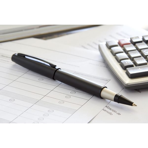 Bolígrafo roller ball con tapón. Incluye estuche.