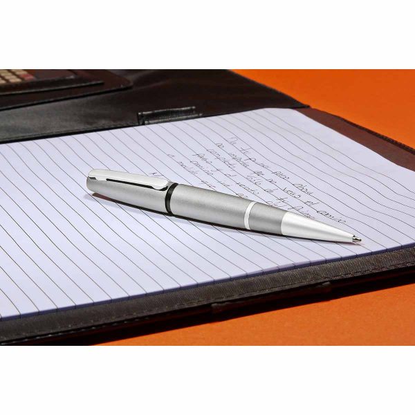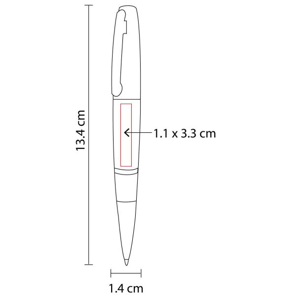 Bolígrafo USB de 4 GB. Mecanismo twist. Incluye estuche y repuesto metálico.
