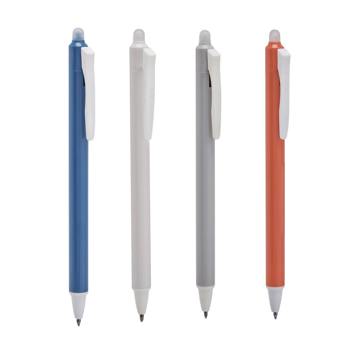 Bolígrafo con tinta de gel que se borra con la fricción de la goma. Mecanismo pulsador.