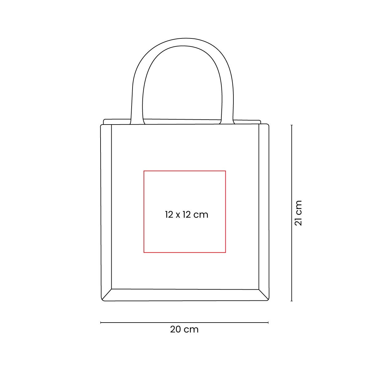 Bolsa mini con fuelle, asas redondeadas e interior plastificado. Su tamaño compacto la hace ideal para transportar objetos pequeños o utilizarla para regalos.