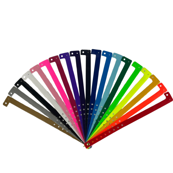 Rojo, Naranja Neón, Amarillo Mango, Amarillo Neón, Verde Bandera, Verde Neón, Azul Cielo, Azul Eléctrico, Azul Rey, Azul Marino, Morado, Lila, Rosa Neón, Rosa Claro, Fucsia, Gris, Blanco, Negro, Café, Plateado y Dorado