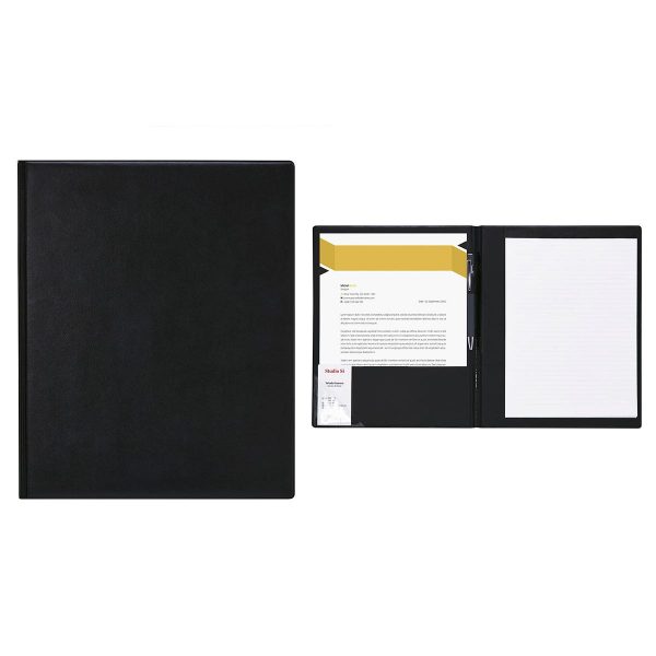 Incluye block de 20 hojas a rayas, 2 separadores de documentos, compartimento para tarjeta y ceja para bolígrafo.