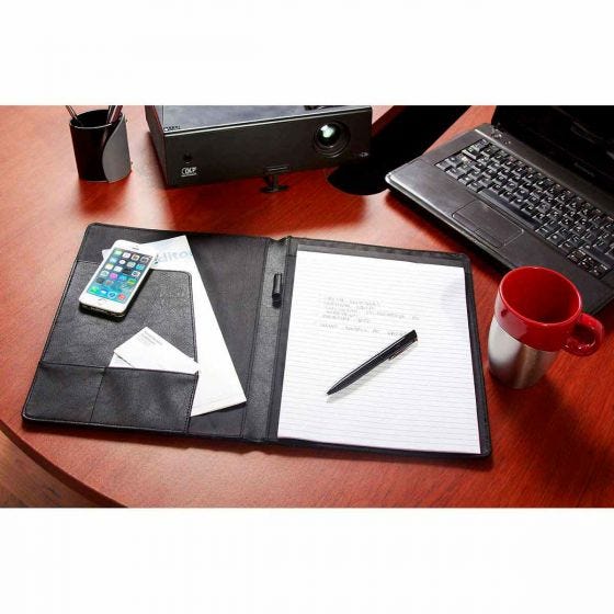 Incluye block de raya tamaño A4 con 20 hojas. No incluye bolígrafo.