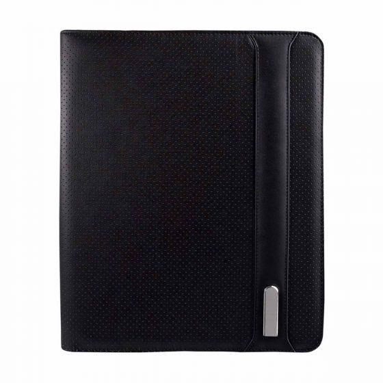 Carpeta con cierre y placa metálica. Incluye block de raya tamaño A4 con 20 hojas. Incluye elástico para bolígrafo. No incluye bolígrafo.
