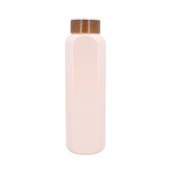 Cilindro de tritán con aditivo antimicrobiano que lo hace eficaz contra el crecimiento de bacterias. Tapa de plástico con fibra de agave. Sistema de rosca twist-off que permite abrir y cerrar la tapa en un giro. Por el tipo de material el color de la tapa puede variar. No exponer el cilindro a temperaturas mayores a 40 °C y revisar que la tapa no esté cerrada completamente para su almacenamiento y transportación. Mantener en su empaque individual antes y después de su transformación. No apto para bebidas calientes. No introducir en microondas ni lavavajillas.
