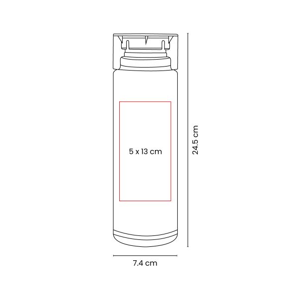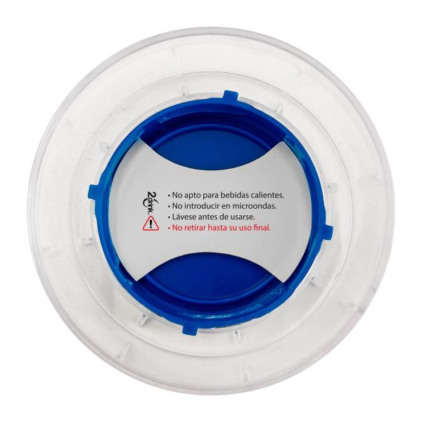 Sistema de rosca twist-off que permite abrir y cerrar la tapa en un giro. Cuenta con dos bandas elásticas de silicón, una en el cuello y otra en la base del cilindro. Mantener el linner en el interior de la tapa en todo momento, se debe retirar hasta su uso final. No exponer el cilindro a temperaturas mayores a 40 °C y revisar que la tapa no esté cerrada completamente para su almacenamiento y transportación. No apto para bebidas calientes. No introducir en microondas ni lavavajillas.