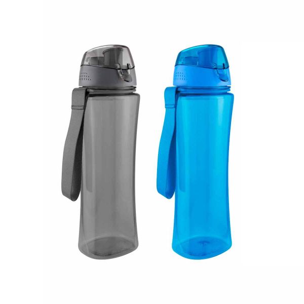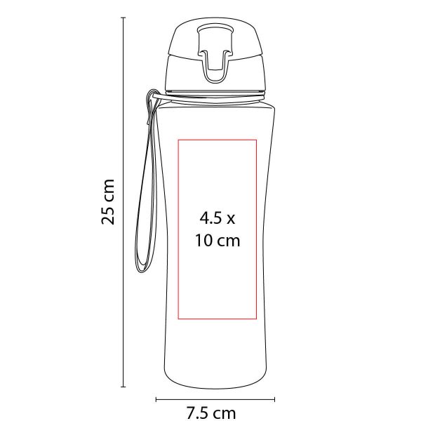 Tapa de rosca con boquilla y sobre tapa de cierre a presión. Incluye asa de tela y caja individual.