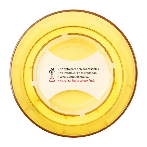 Sistema de rosca twist-off que permite abrir y cerrar la tapa en un giro. Mantener el linner en el interior de la tapa en todo momento, se debe retirar hasta su uso final. No exponer el cilindro a temperaturas mayores a 40 °C y revisar que la tapa no esté cerrada completamente para su almacenamiento y transportación. Mantener en su empaque individual antes y después de su transformación. No apto para bebidas calientes. No introducir en microondas ni lavavajillas.
