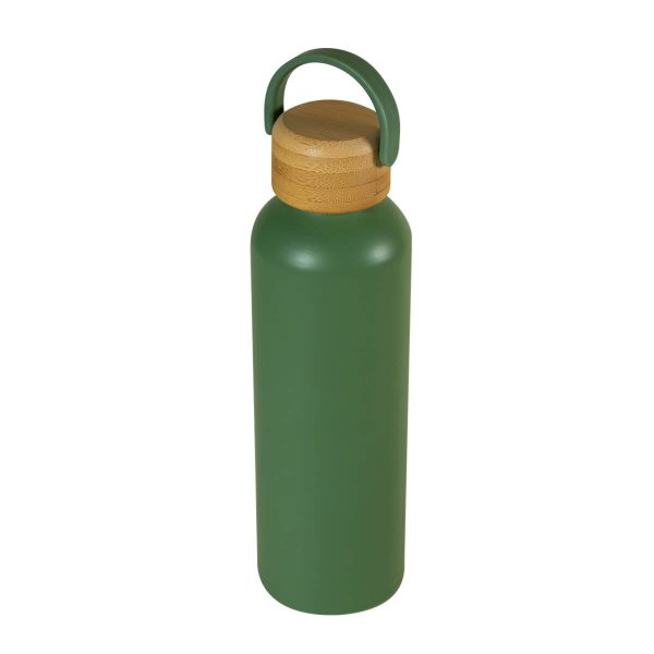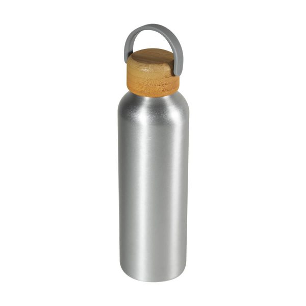 Cilindro metálico de una pared. Tapa de bambú con cierre de rosca y asa de plástico. Terminado mate. Incluye caja individual. El bambú es un producto natural el cual puede presentar variaciones en tonalidades y vetas.