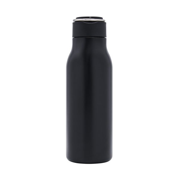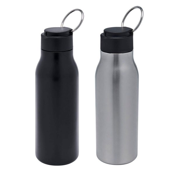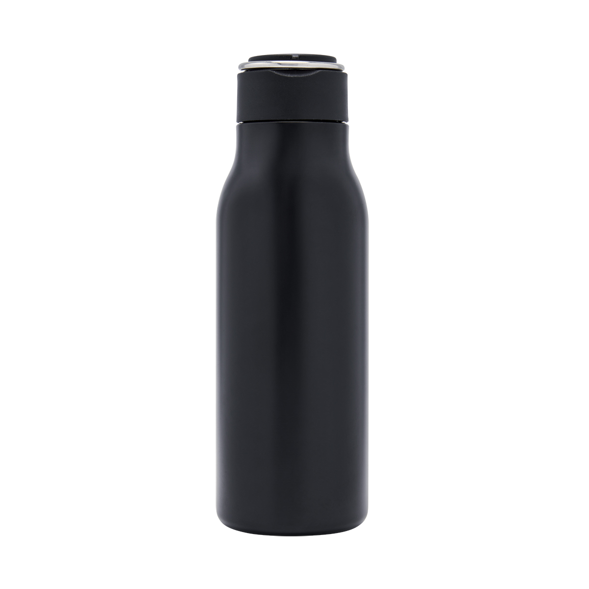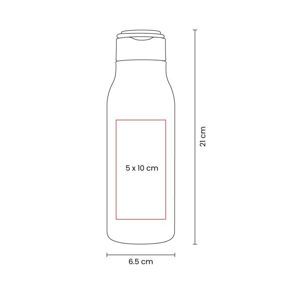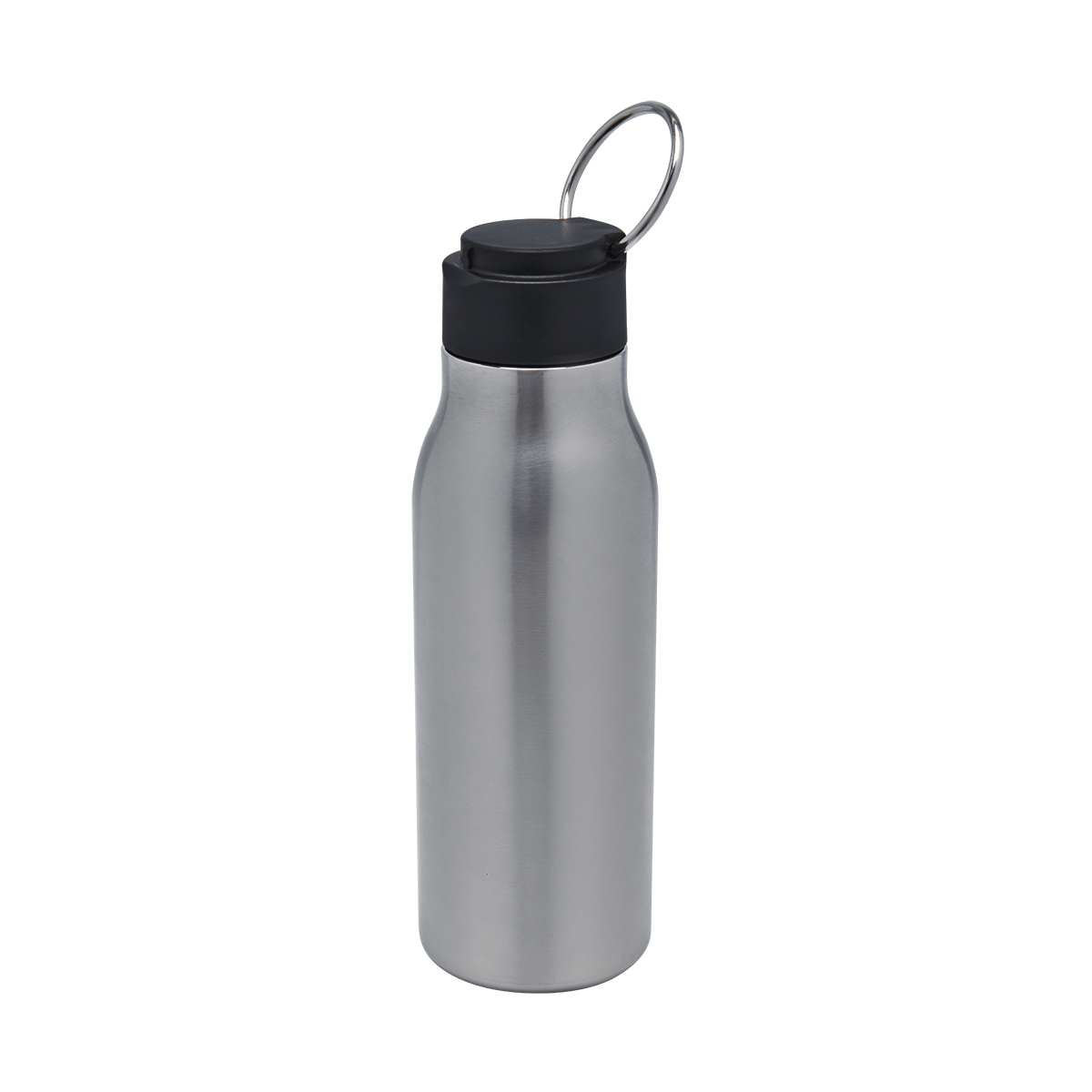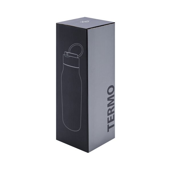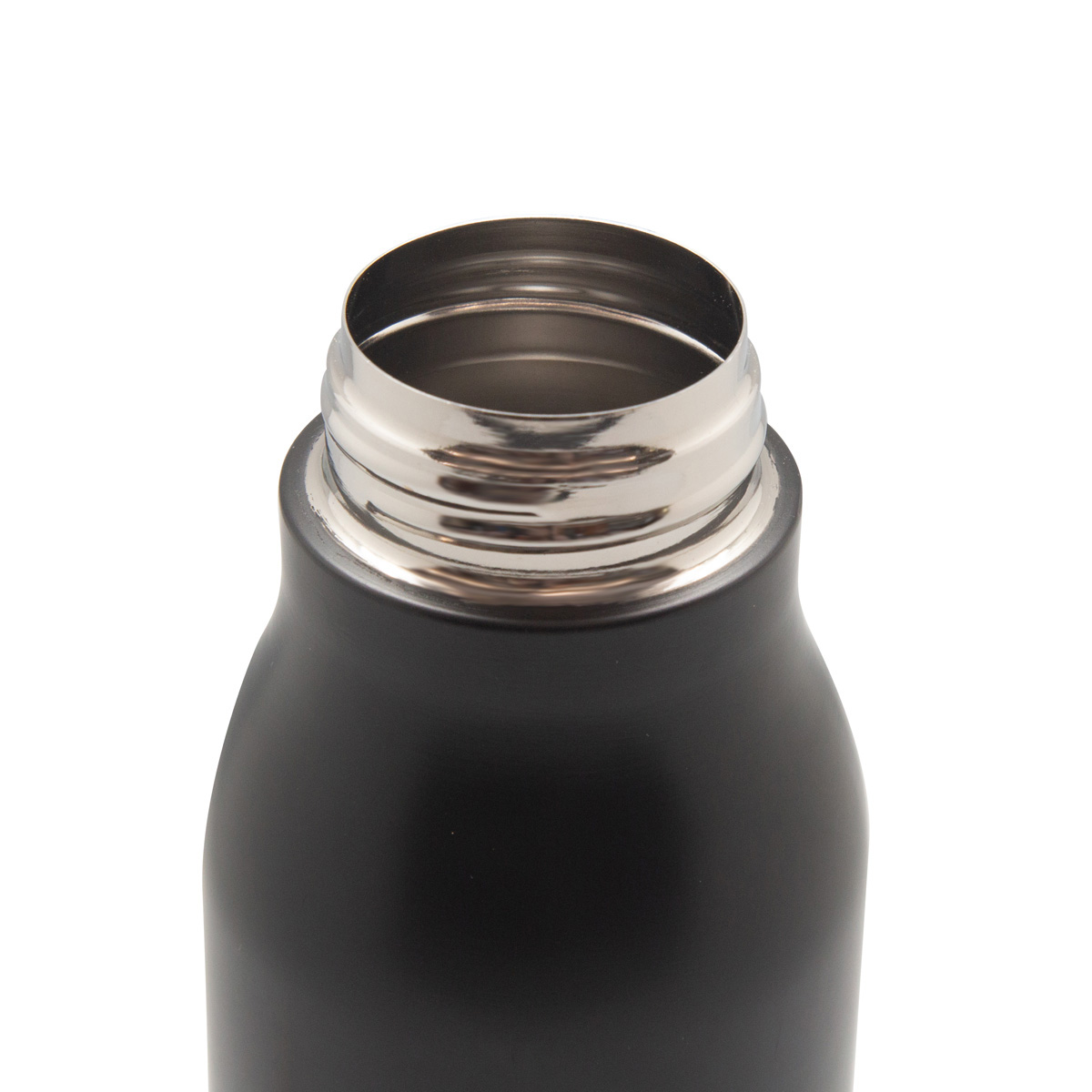 Cilindro metálico de una pared y tapa de plástico con cierre de rosca. Incluye aro metálico en la tapa que funciona como asa. Terminado mate. Incluye caja individual.