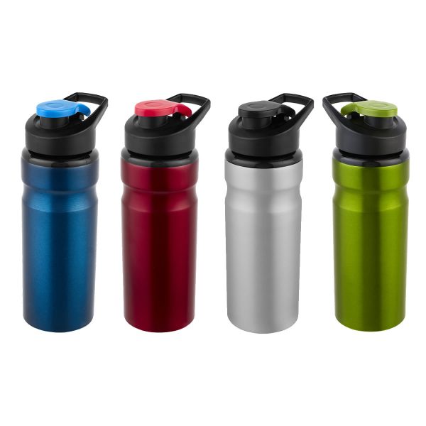 Cilindro de aluminio de una pared. Tapa de plástico con cierre de rosca, asa, boquilla y sobre tapa de presión. Incluye caja individual.