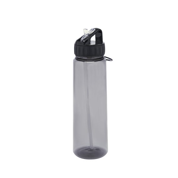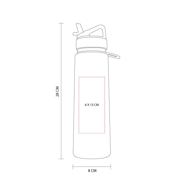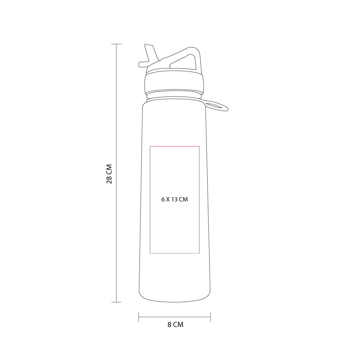 Tapa con cierre de rosca, asa y boquilla plegable para beber. Incluye popote y aro de silicón para colgar toalla, llaves etc. Caja individual incluida.