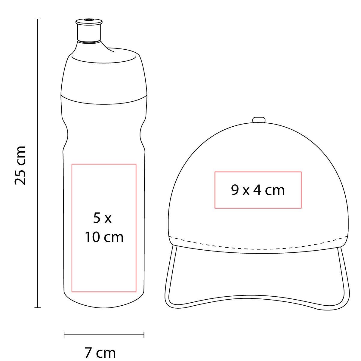 Área 9 x 4 cm Gorra / 5 x 10 cm Cilindro