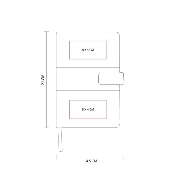 Libreta con 80 hojas de raya. Incluye broche magnético y separador de hojas.