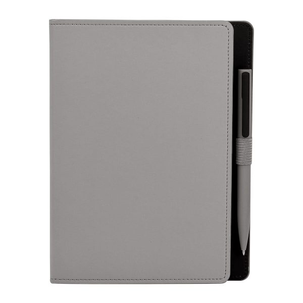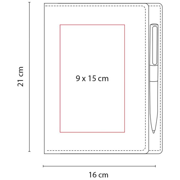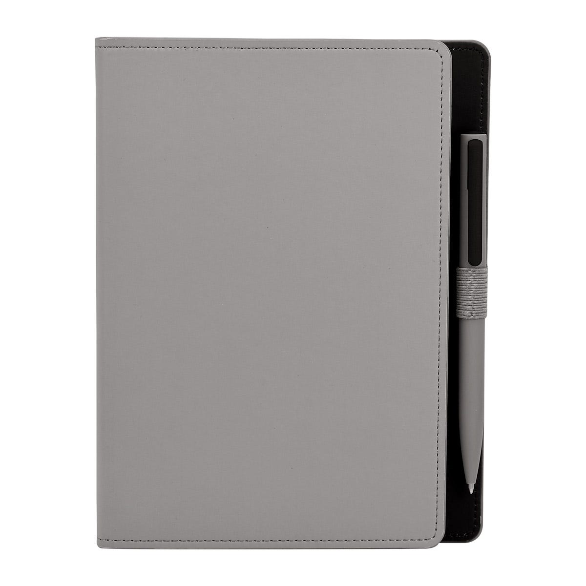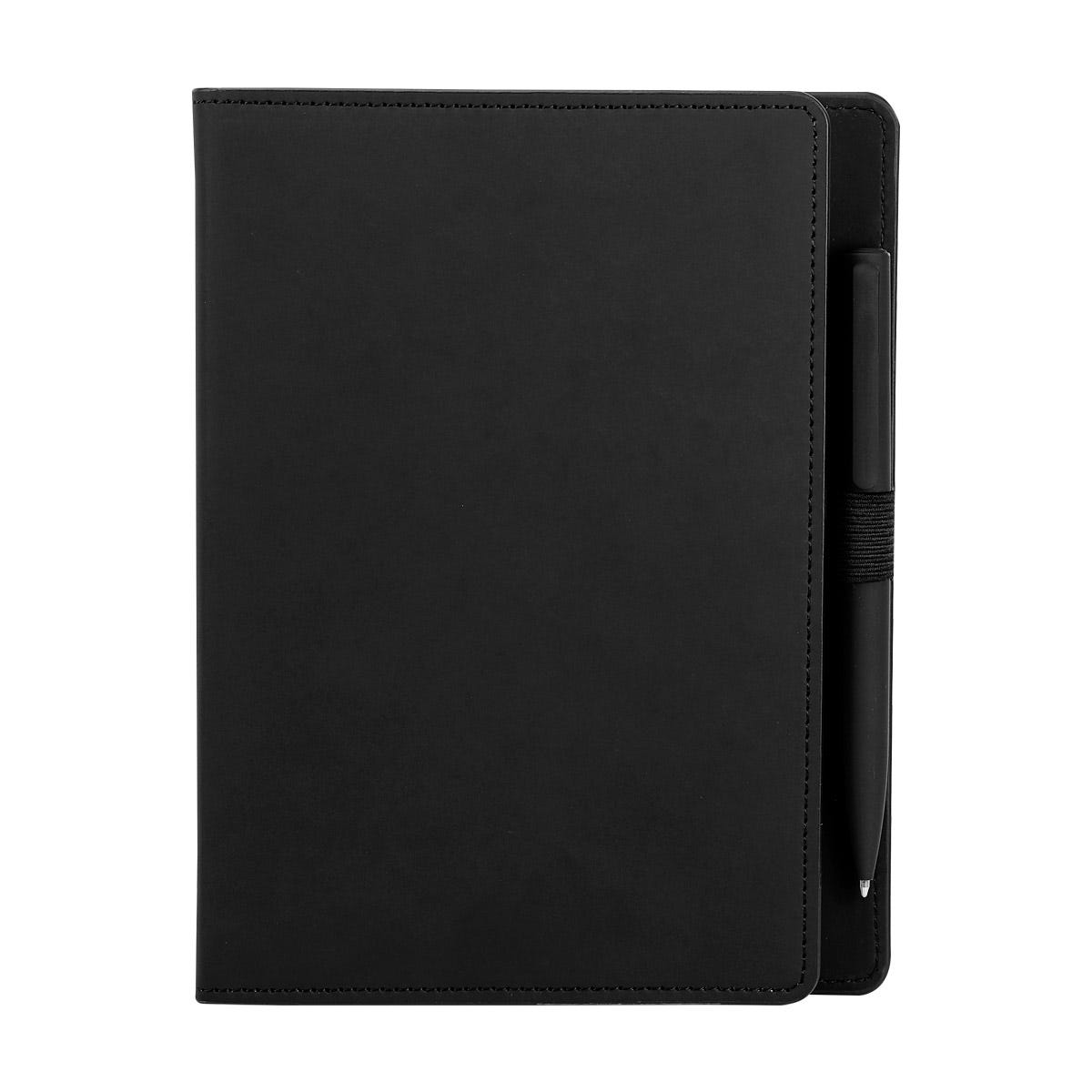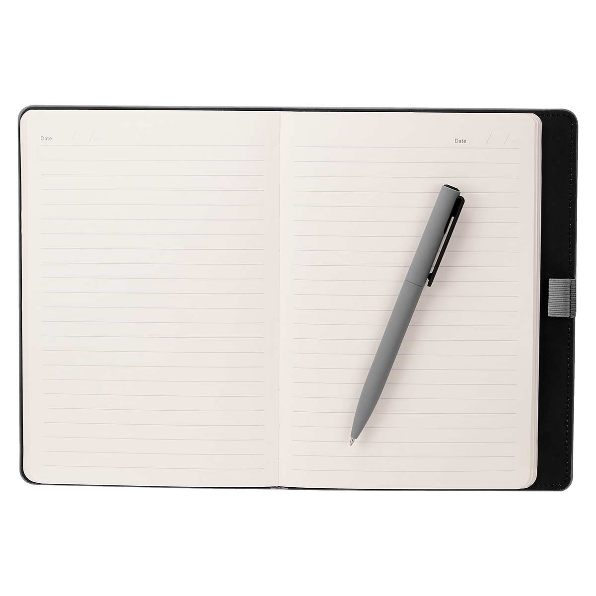 Libreta con 80 hojas de raya. Incluye bolígrafo terminado rubber.