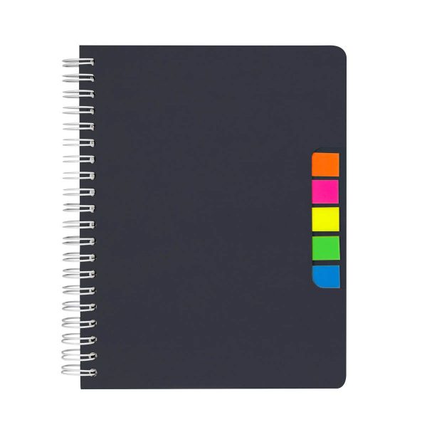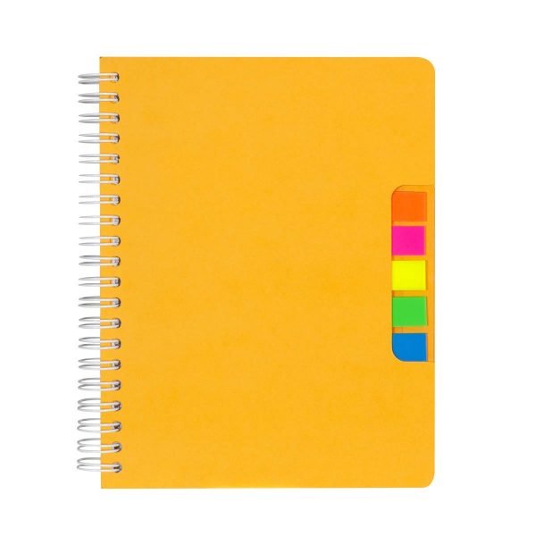 70 Hojas de raya. Incluye notas adheribles en 5 colores, bolígrafo ecológico y espiral metálico doble.