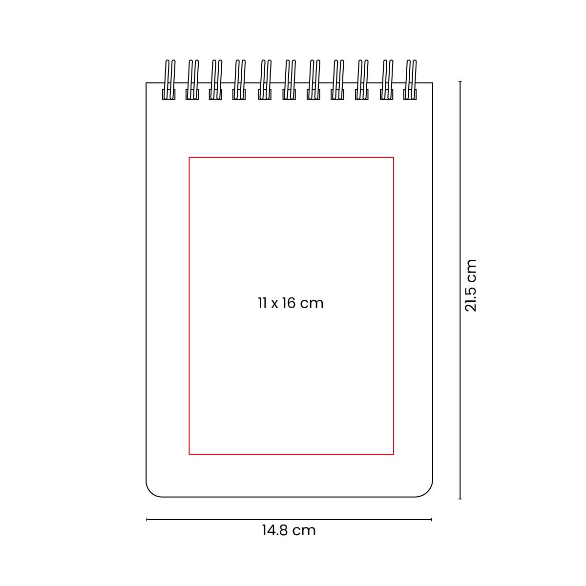 Libreta de espiral con 100 hojas a raya. Cubierta rígida de tela. Su formato vertical, hace que se distinga de las libretas tradicionales, ofreciendo una experiencia diferente y práctica al tomar notas o plasmar ideas.