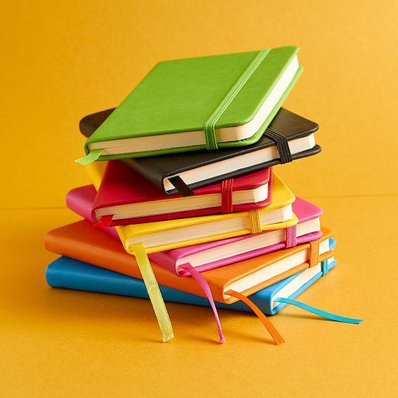80 Hojas de raya. Incluye separador de hojas y elástico para cerrar.