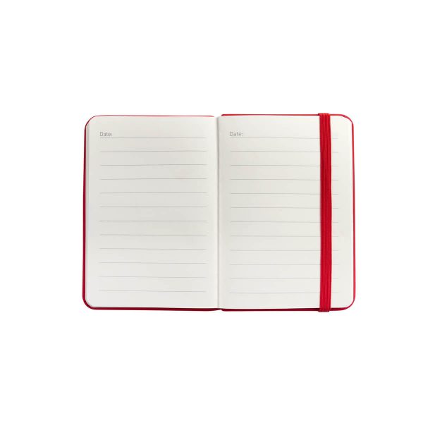 Libreta con 100 hojas de raya. Cada página está diseñada con un apartado especial para poner la fecha, permitiéndote organizar tus notas y escritos de manera cronológica. Incluye elástico para cerrar. Con su tamaño compacto, se adapta fácilmente a tu bolsillo, bolsa o mochila.
