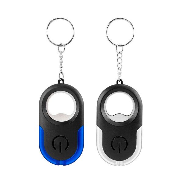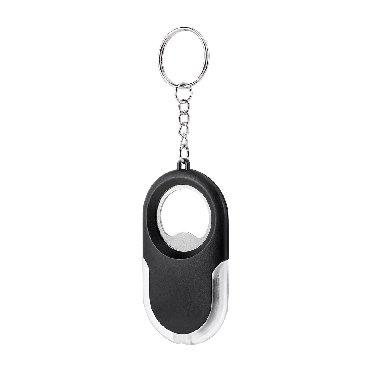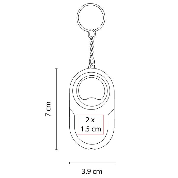 Llavero destapador con lámpara de 1 LED. Incluye 2 baterías de botón.