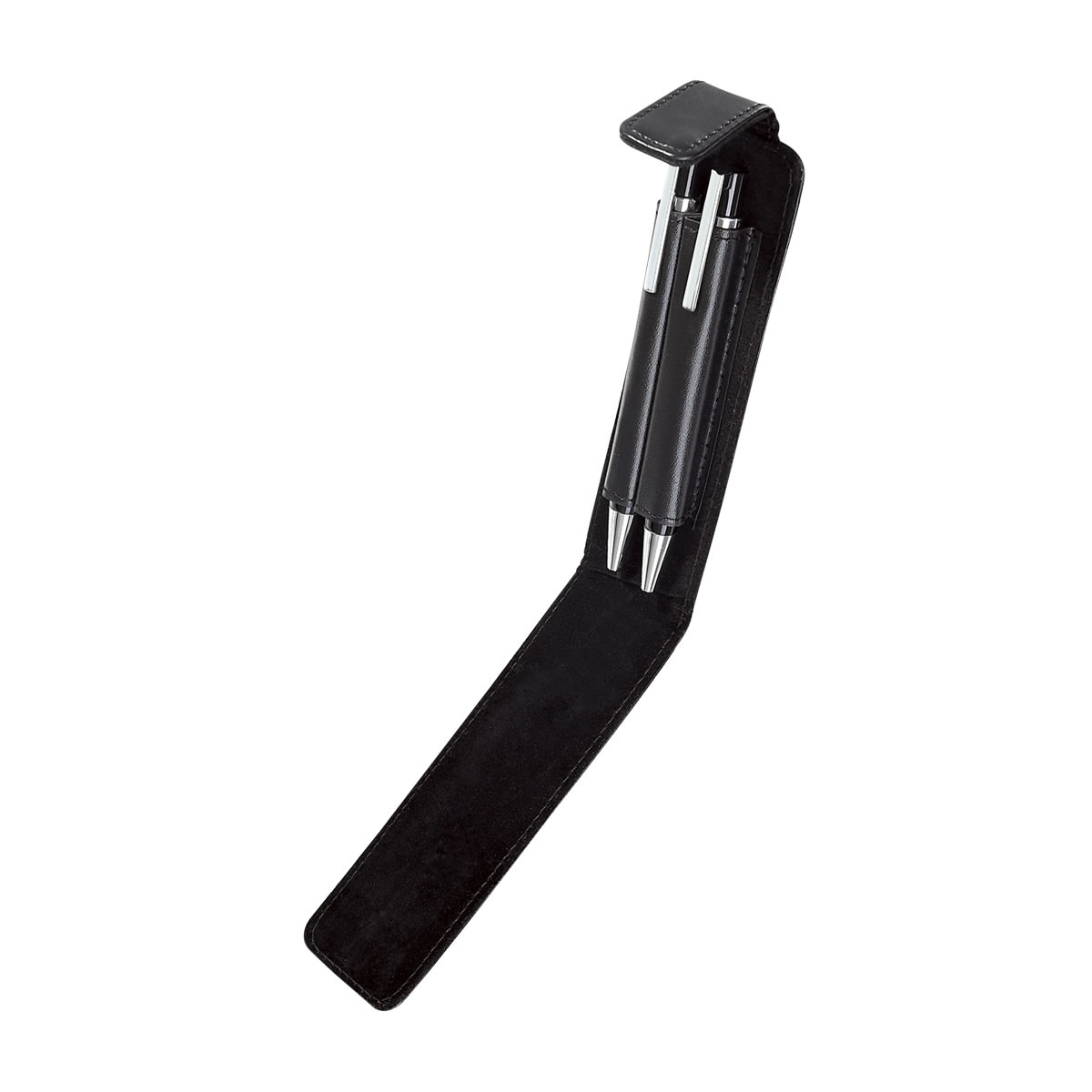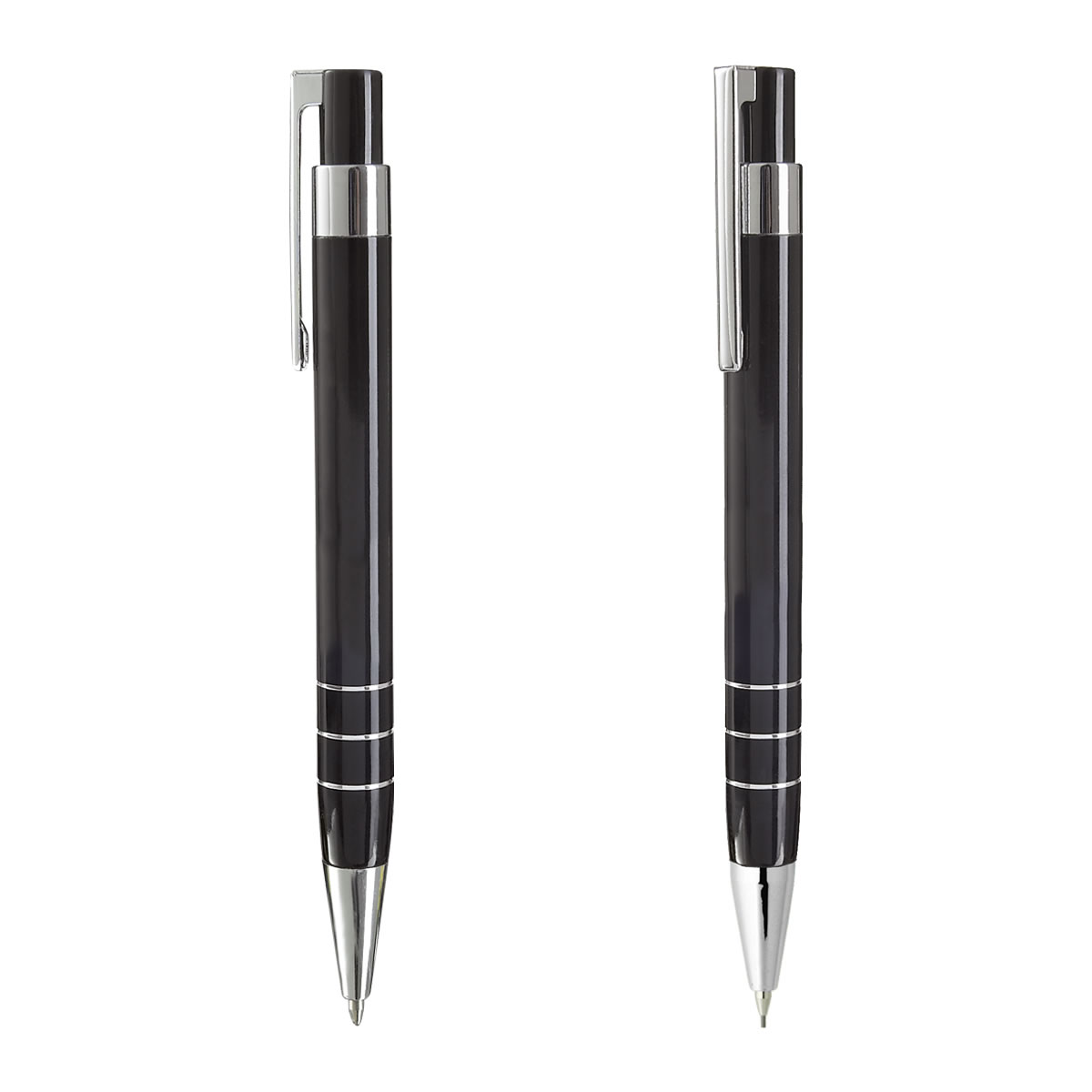 Bolígrafo y lapicera 0.5 mm. Mecanismo pulsador. Incluye estuche con imán para cerrado.