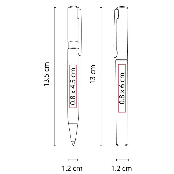 Área | 0.8 x 4.5 cm Ball Point / 0.8 x 6 cm Roller Pen |