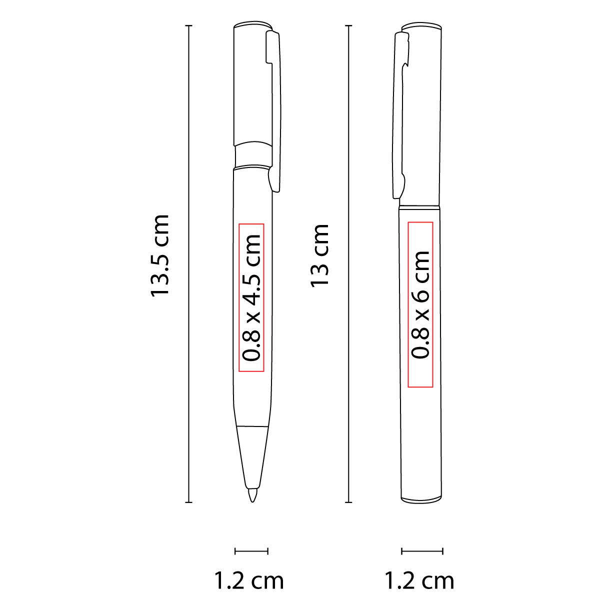 Medida | 1.2 x 13.5 cm Ball Point / 1.2 x 13 cm Roller Pen |