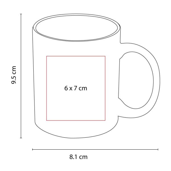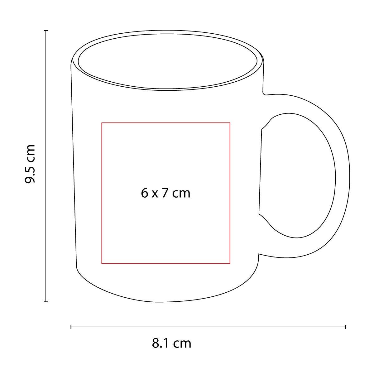 Taza para sublimación de cerámica termosensible que cambia de color al verterle agua caliente. Al enfriarse la taza vuelve a su color original.