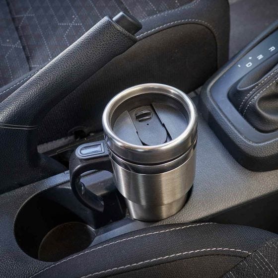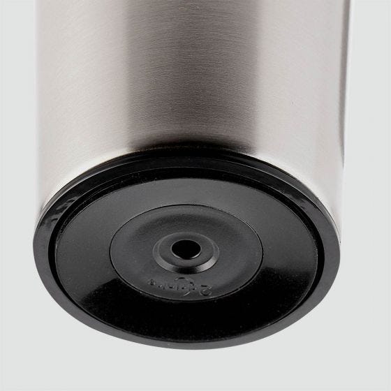 Doble pared. Cerrado al vacío. Pared interna y externa acero inoxidable. Incluye chupón de succión que permite la fijación a la superficie evitando el derrame por accidente. Incluye válvula de seguridad.