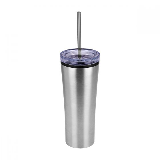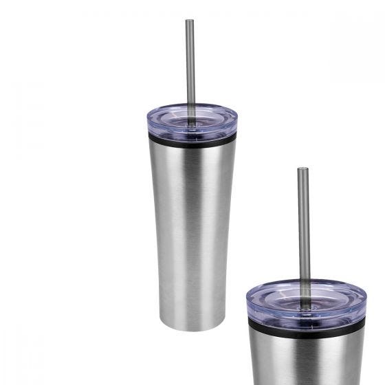 Doble pared. Pared interior plástico, pared exterior acero inoxidable. Incluye popote de plástico.