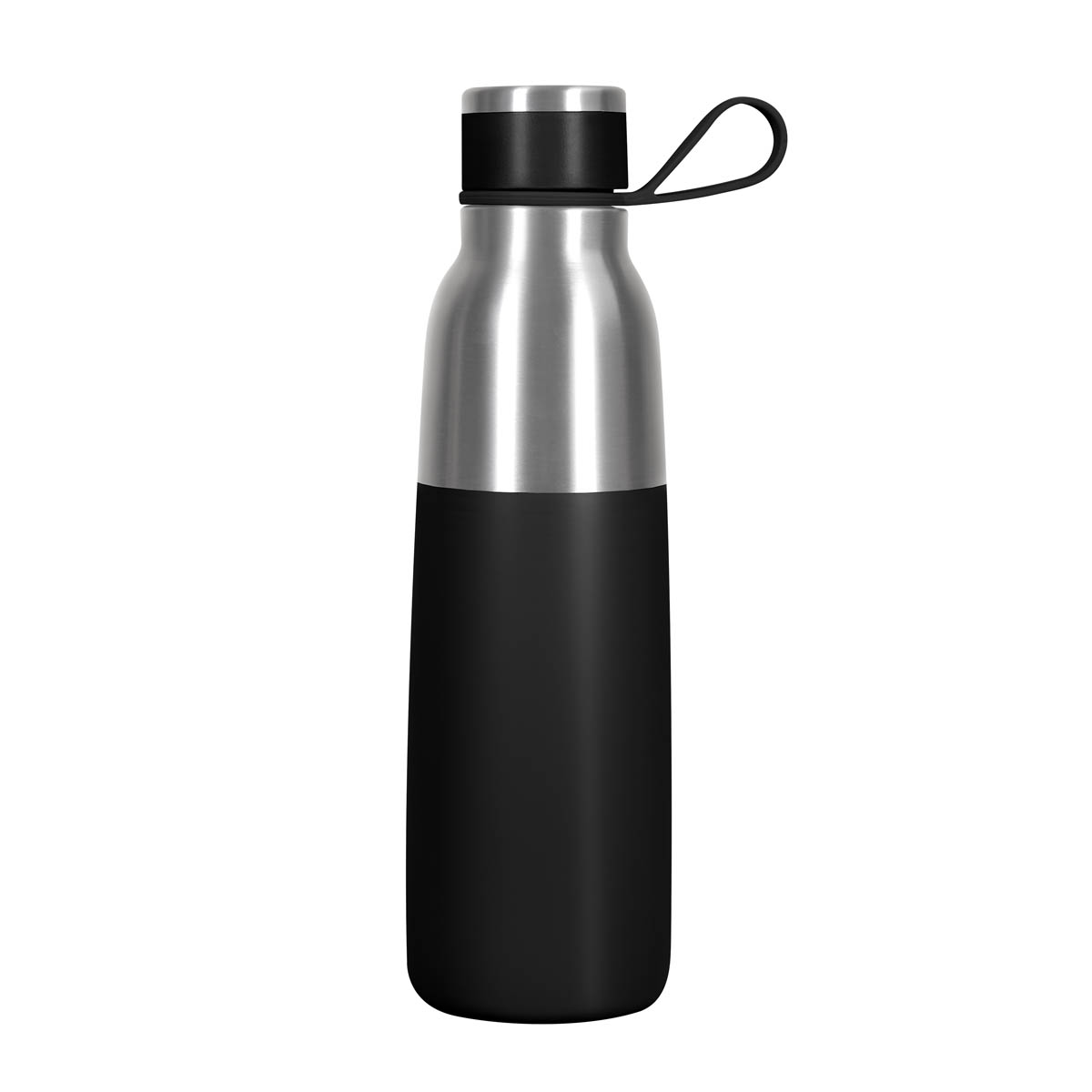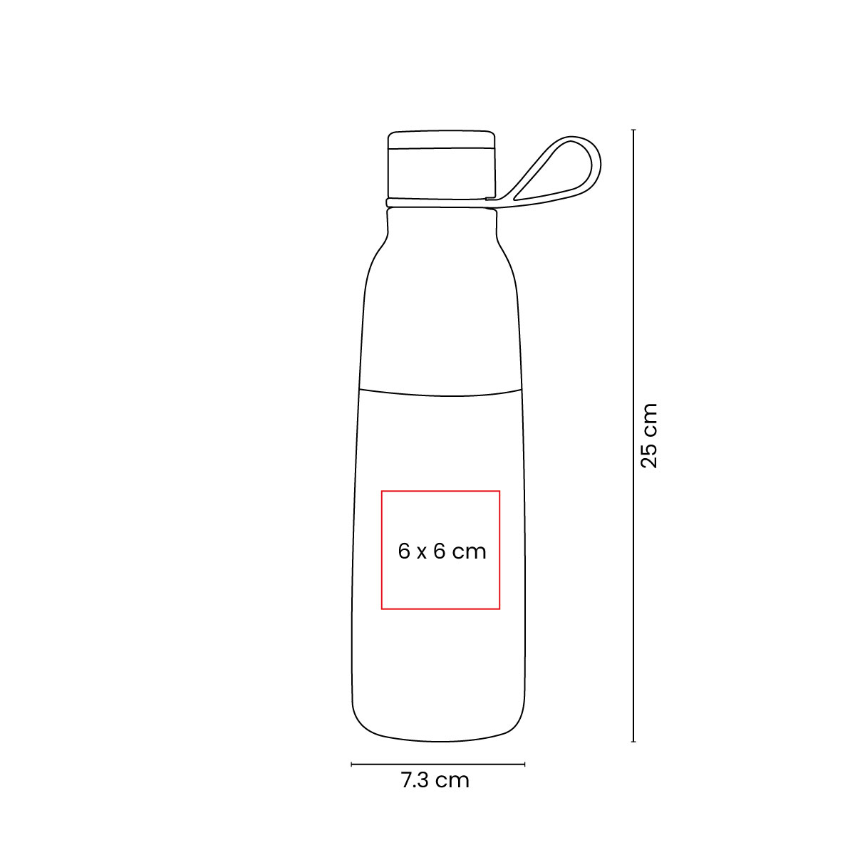 Termo doble pared. Cerrado al vacío. Pared interna y externa acero inoxidable. Tapa con sistema de rosca. Asa de silicón que permite llevarlo a todos lados. Mantiene temperatura caliente 6 hrs y temperatura fría 8 hrs aproximadamente. Incluye caja individual.