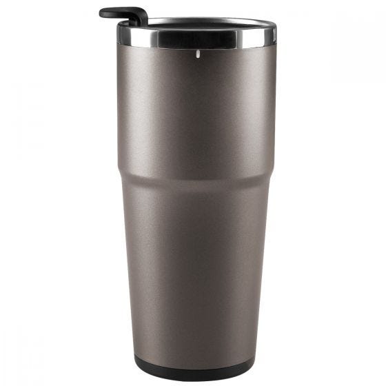 Doble pared. Pared interior acero inoxidable, pared exterior plástico. Tapa en dos posiciones. Sensor de luz led con grabado, incluye instructivo. No usar en microondas ni lavavajillas.