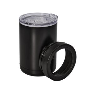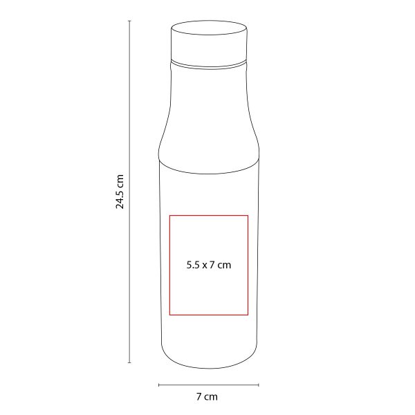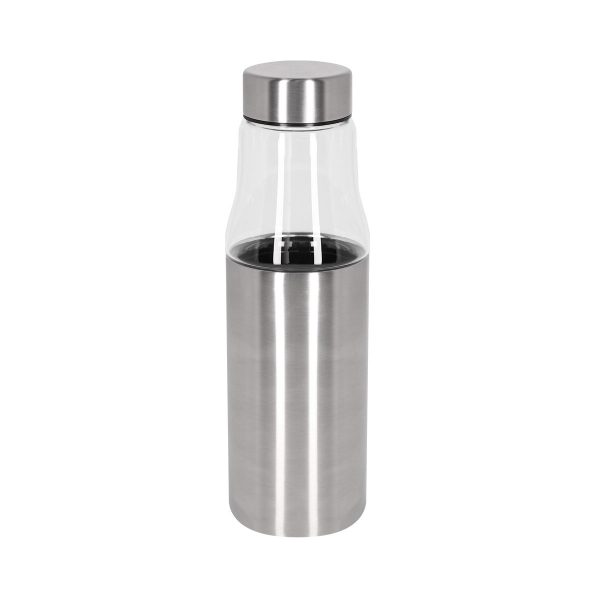 Termo de vidrio doble pared con base exterior de acero inoxidable desprendible. Cerrado al vacío para conservar el frío o calor de la bebida. Tapa de metal de rosca. La base desprendible puede ser utilizada como vaso. Incluye caja individual.