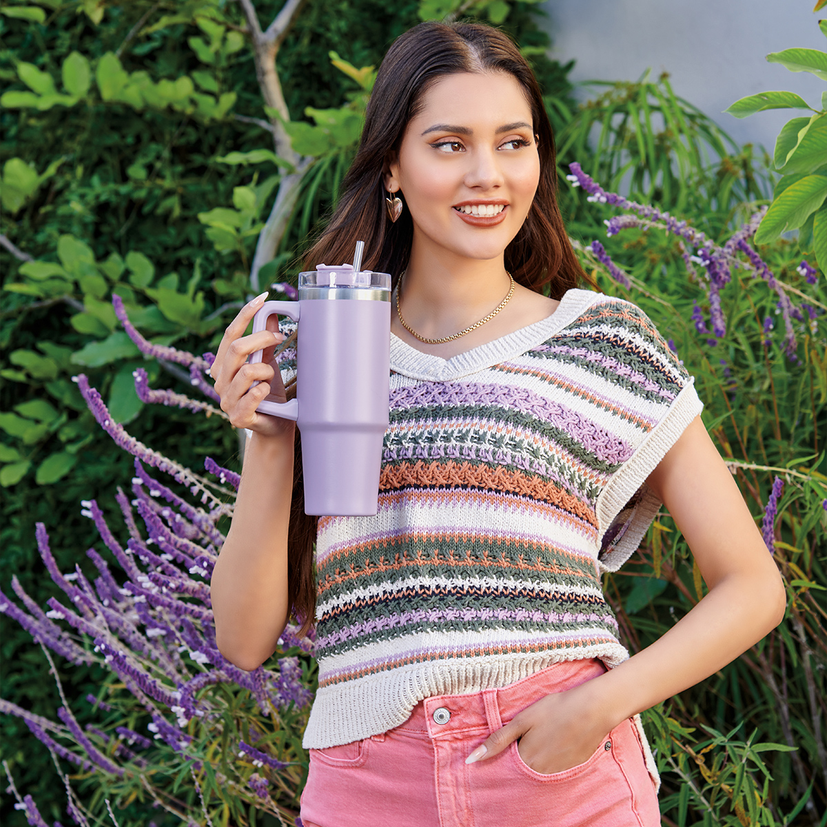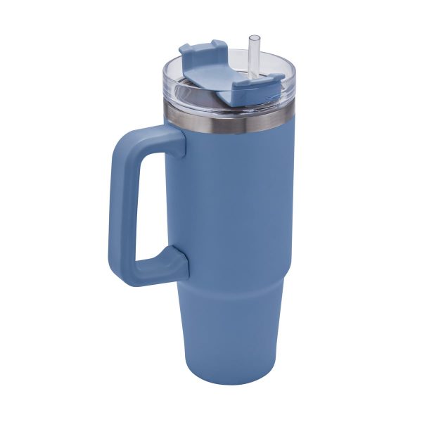 Doble pared. Cerrado al vacío. Pared interna y externa acero inoxidable. Tapa de plástico con cierre de rosca y sobretapa giratoria de 3 posiciones con ranura para popote. Incluye popote y asa de plástico. Mantiene temperatura caliente 6 hrs y temperatura fría 8 hrs aproximadamente. Incluye caja individual.