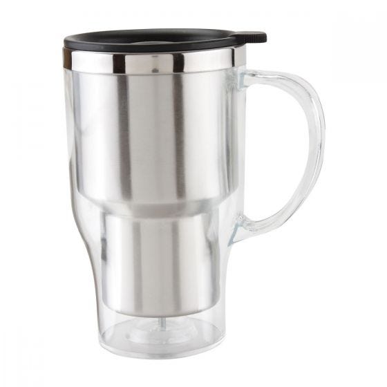 Doble pared. Pared interior acero inoxidable, pared exterior plástico. Cubierta translúcida.