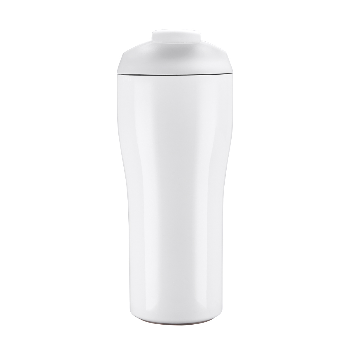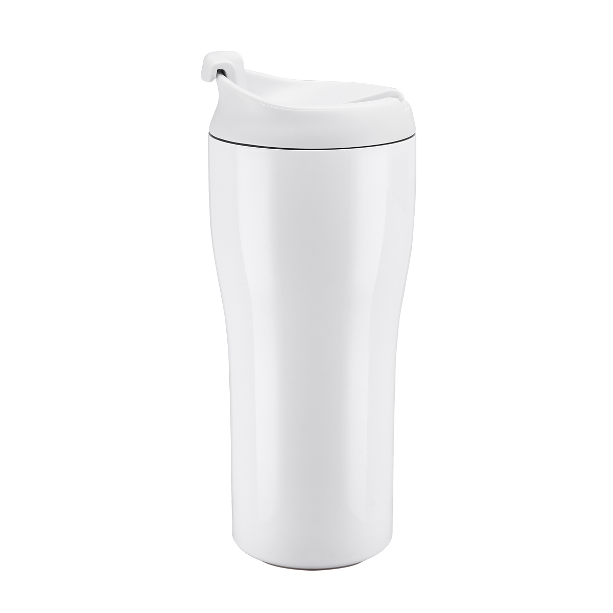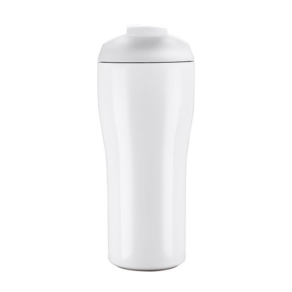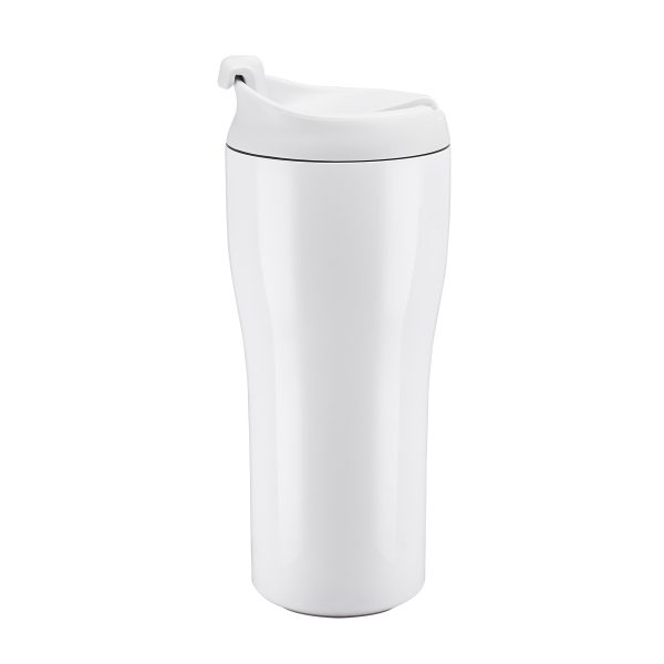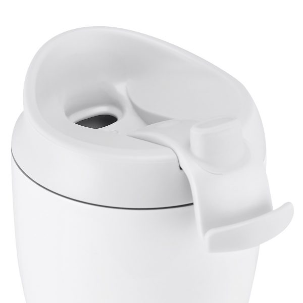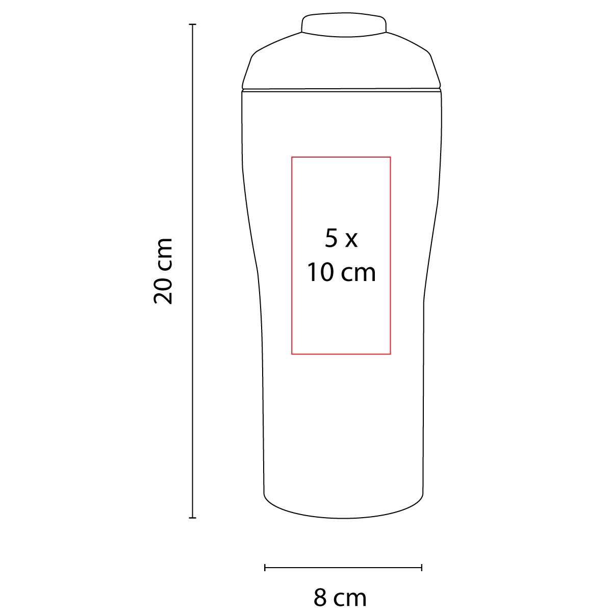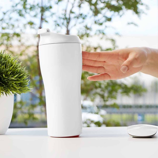 Doble pared. Cerrado al vacío. Pared interna y externa acero inoxidable. Con sistema de succión en la base, que permite la fijación a la superficie, evitando el derrame por accidente. Tapa de plástico con boquilla y sobre tapa de cierre a presión. Mantiene temperatura caliente 6 hrs. y temperatura fría 8 hrs. aproximadamente. Incluye caja individual.