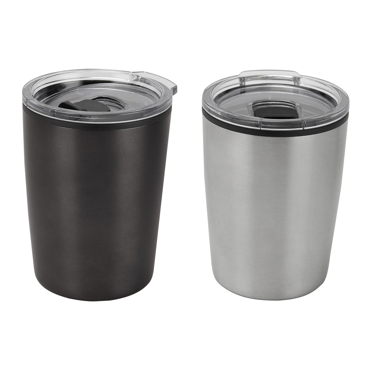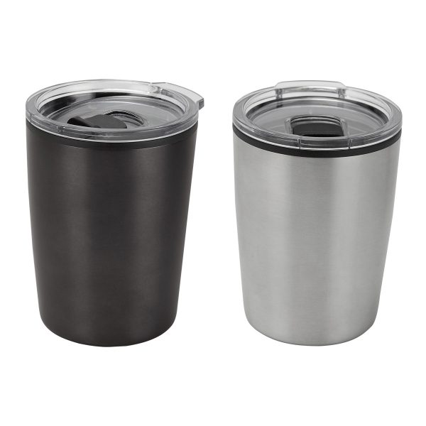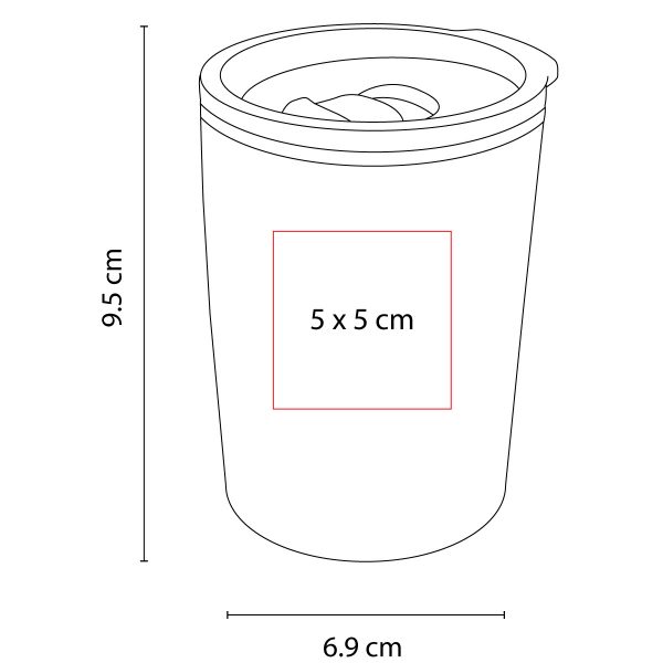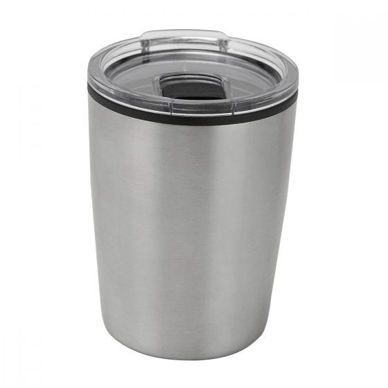 Doble pared. Pared interna plástico, pared externa acero inoxidable. Tapa de plástico con válvula de seguridad. Incluye caja individual.