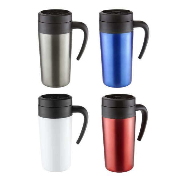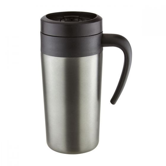 Doble pared. Pared interna plástico, pared externa acero inoxidable. Tapa de plástico con válvula de seguridad. Incluye caja individual.