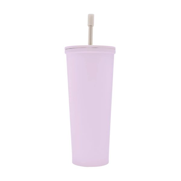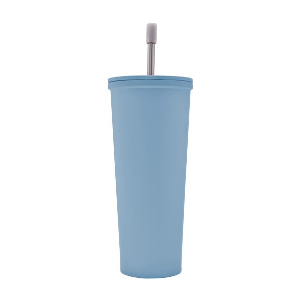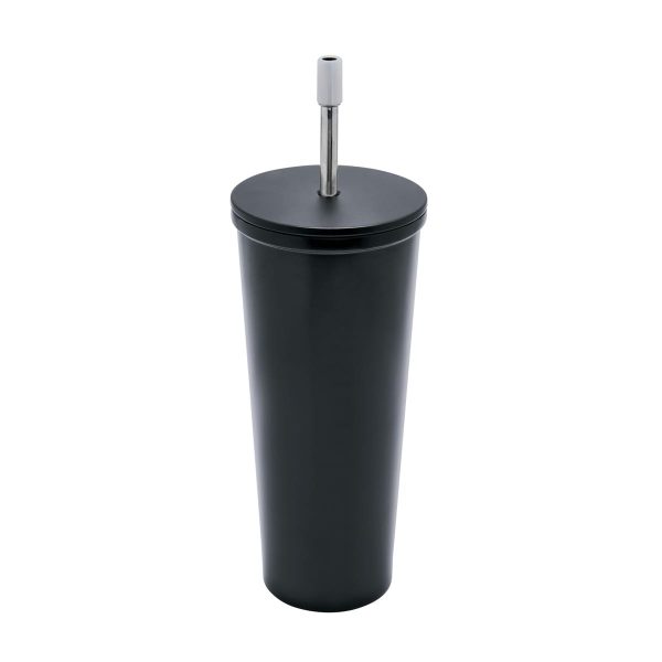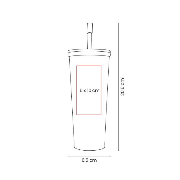 Doble pared. Cerrado al vacío. Pared interna y externa de acero inoxidable. Tapa de metal con plástico y cierre de rosca. Mantiene temperatura caliente 8 hrs y temperatura fría 10 hrs aproximadamente. Incluye popote metálico con boquilla de silicón. Caja individual incluida.