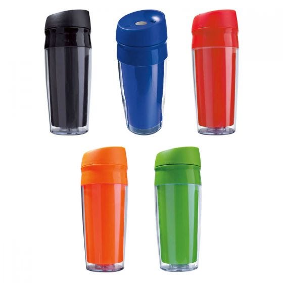 Doble pared plástico. Con válvula especial para abrir y cerrar.