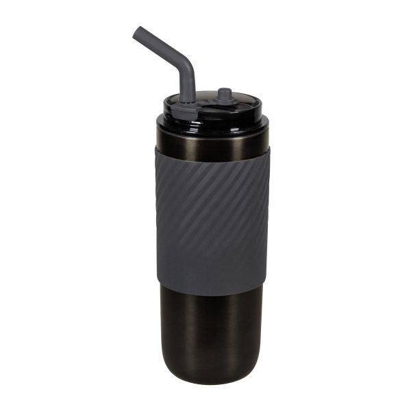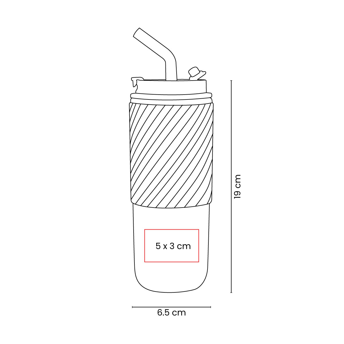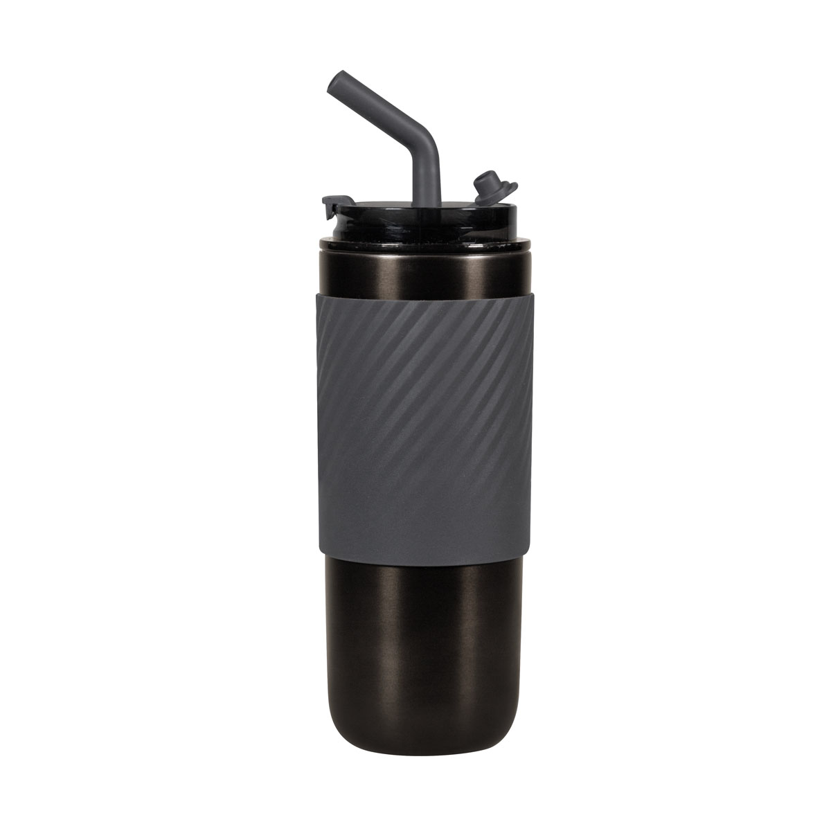 Doble pared. Cerrado al vacío. Pared interna y externa de acero inoxidable.Tapa con sistema de rosca, sobretapa de push y ranura especial con tapón para popote. Incluye popote metálico con boquilla de silicón. Banda de silicón antiderrapante. Mantiene la temperatura caliente por 6 hrs y fría 12 hrs aproximadamente.Caja individual incluida.
